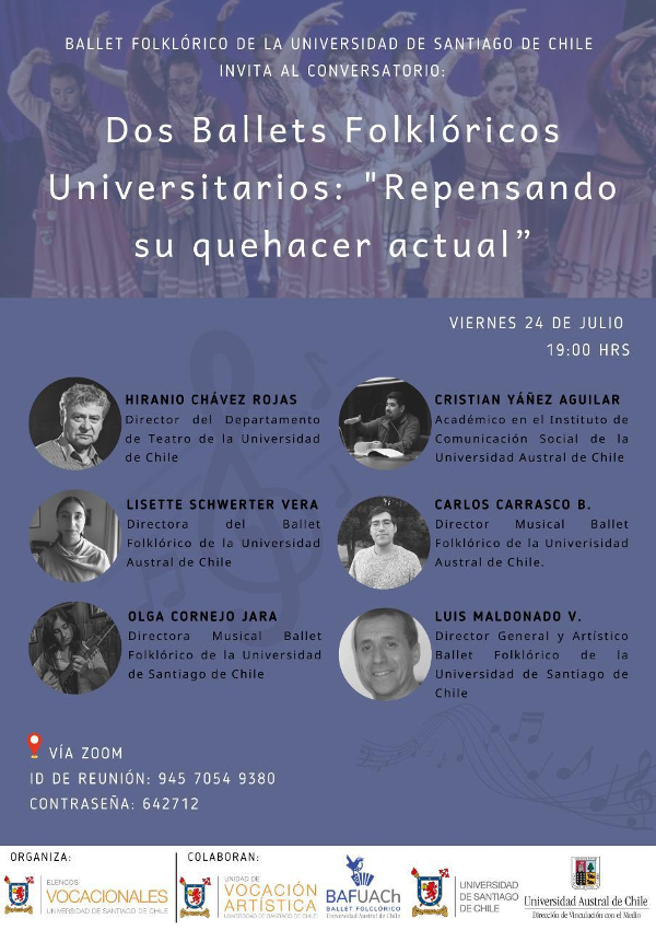 El conversatorio nació con la intención de, junto a celebrar los 55 años del Ballet Folklórico Usach, efectuar una actividad que inicialmente se realizaría en forma presencial en nuestra Unidad de Vocación Artística, específicamente en la Sala de las Artes Víctor Jara.