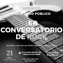 Dar a conocer el Estilo musical del Rock, nacido en la década de 1960 como derivación del rock and roll, es el objetivo del conversatorio presentado por el profesor Percy Alvarado y organizado por la Casa de las Artes y la Cultura de la Universidad Austral de Chile Sede Puerto Montt.