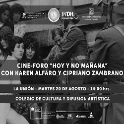 La película "Hoy y No Mañana" narra la historia del movimiento Mujeres por la Vida durante la dictadura militar, mujeres que se organizaban y convocaban a miles para realizar acciones de arte y actos relámpagos que resultaban ser inéditos para la época. Esto con el objetivo de denunciar los hechos de violencia y muerte que ocurría en esa época. Cabe señalar que en 2018 el documental obtuvo una distinción especial del Instituto Nacional de Derechos Humanos en FIDOCS.