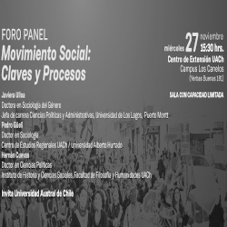 Este miércoles 27 de noviembre desde las 15:30 horas se realizará el foro panel "Movimiento Social: Claves y Procesos".
