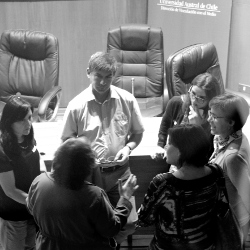 La secuencia del encuentro incorporó asimismo la participación de estudiantes UACh de diversas Facultades que desarrollan procesos de voluntariado o proyectos y asesorías en áreas de emprendizaje, de medicina veterinaria o salud humana. La materialidad de tales esfuerzos complementan diseños académicos que piensan desde la integralidad de la formación un servicio y compromiso social que va más allá de lo inmediato. Es así como los voluntariados de antaño han dado espacio a programas permanentes o a iniciativas inspiradas en otras disciplinas. Esta experiencia estuvo expresada en las presentaciones de Álvaro Morales (Académico Facultad de Ciencias Veterinarias) y Oscar Barrientos (Estudiante de Medicina Veterinaria); en la presentación de Sylvia Gómez (Académica Facultad de Medicina), Camila Ruiz y Rubén Vasquez (Estudiantes de Enfermería). A estas se sumó la presentación de Ester Fecci (Directora Centro de Emprendizaje de la Facultad de Ciencias Económicas y Administrativas) y Guisela Miranda (Encargada Territorial de FOSIS + Territorio, Región de Los Ríos).