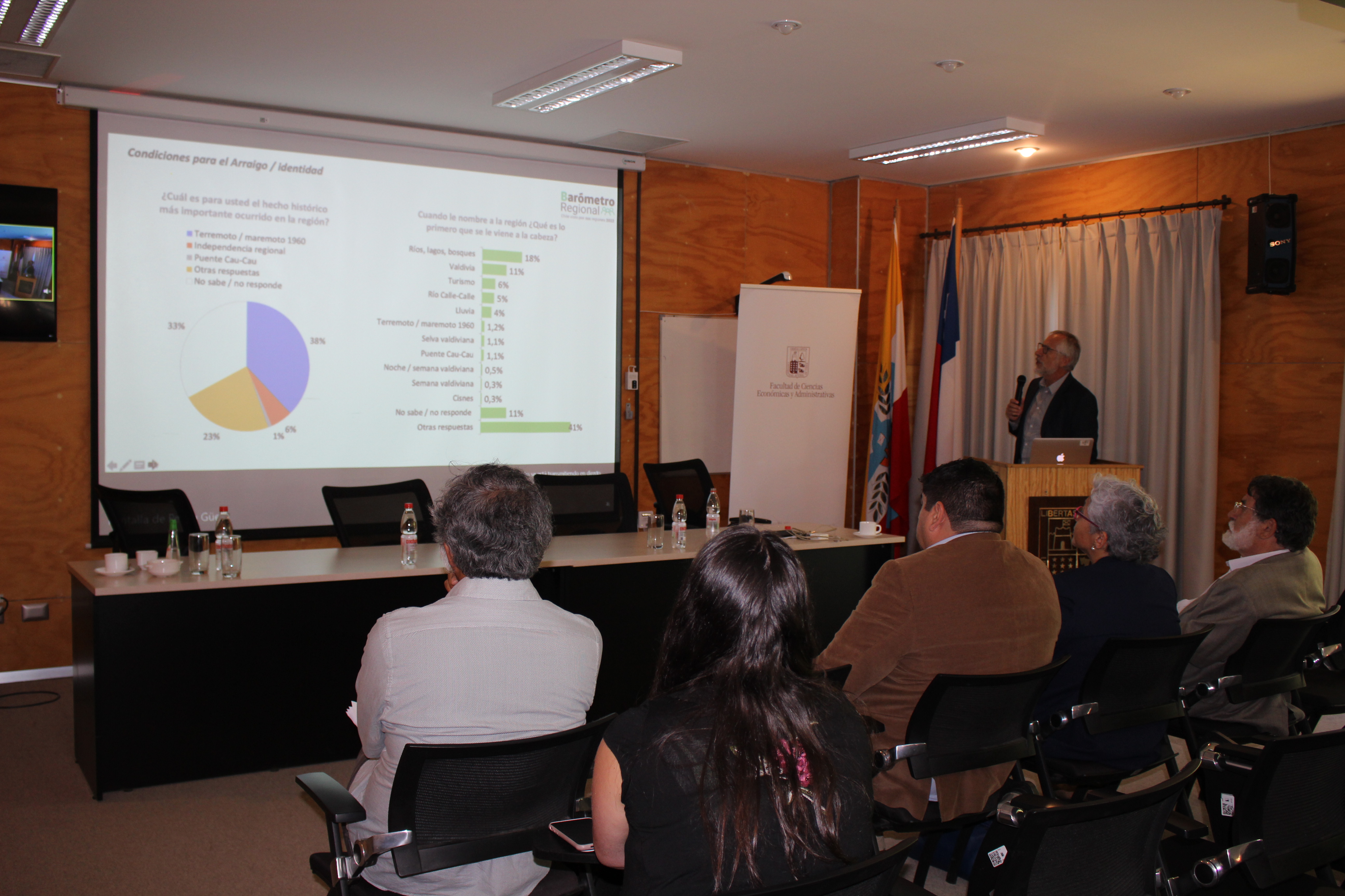 La presentación de los resultados de la Encuesta Barómetro Regional, Región de Los Ríos, se realizó en la Facultad de Ciencias Económicas y Administrativas de la UACh y contó con la participación de autoridades regionales, académicos, estudiantes, y representantes de organizaciones sociales y sociedad civil.